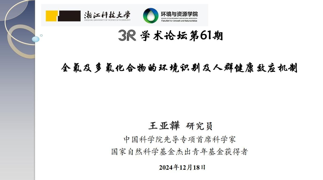 2024年12月18日下午,中国科学院先导专项首席科学家、中组部WR领军人才、国家自然科学基金杰出青年基金及优秀青年基金获得者、中组部万人计划“青年拔尖人才”、中国环境科学学会环境化学分会主任、国家重点研发计划及“重点专项总体专家组成员、中国科学院生态环境研究中心王亚韡研究员来访我院并作题为“全氟及多氟化合物的环境识别及人群健康效应机制研究”的精彩报告,报告由方婧教授主持,学院教师及研究生等三十余人参加了报告会。