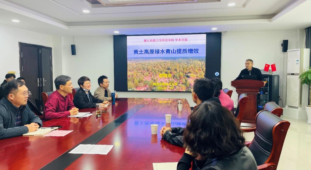 2024年11月22日,中国科学院院士、著名土壤物理学家、西北农林科技大学邵明安院士来访我院并作题为“黄土高原绿水青山提质增效”的学术报告,报告由学校党委副书记单胜道教授主持,报告由学校党委副书记单胜道教授主持,学院环境工程系专业教师和在读硕士研究生等四十余人参加了报告会。