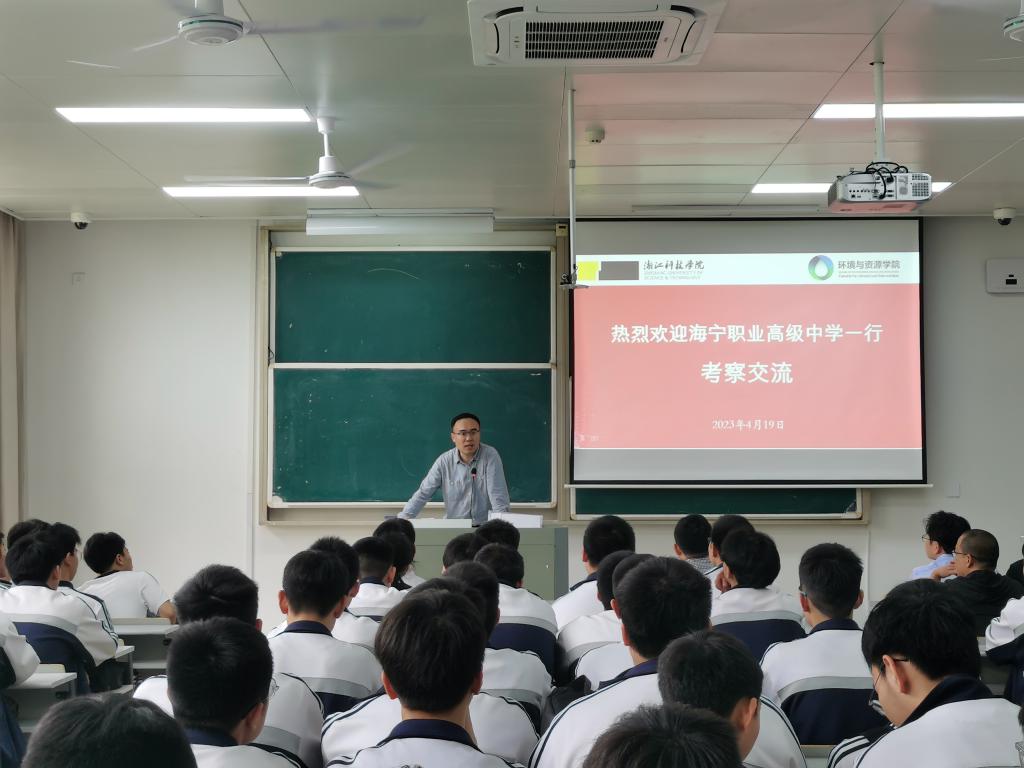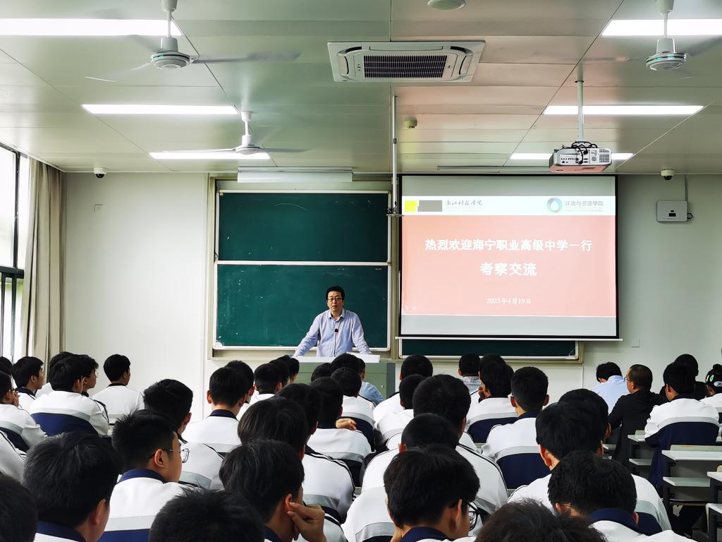 院长刘赫扬首先对海宁职业高级中学师生表示欢迎,同时对我校的校史、师生情况、办学特色进行了简要介绍。党总支书记李俊就学院的发展历史和学科现状展开介绍,包括近年来学院在科学研究、人才培养、社会服务等方面的取得的成果。系部负责人与学生代表分别对专业学习和大学生活进行了详细补充。座谈会后,相关专业教师陪同来访师生进行了校园和实验室参观,双方就职业规划、专业选择与就业等方面进行了现场交流。