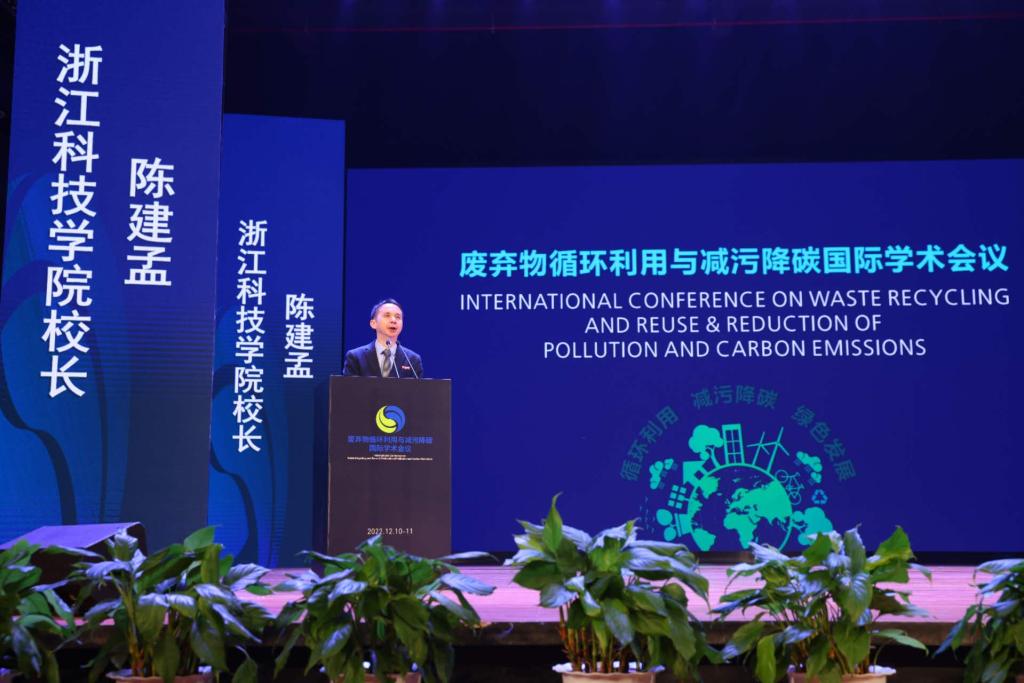 12月10日上午,会议开幕式和主旨报告隆重举行,浙江科技学院校长陈建孟代表学校向各位与会专家和代表表示欢迎与感谢,他指出“废弃物循环利用与减污降碳”国际学术会议的举办,是贯彻可持续发展战略、落实新发展理念的生动实践,并真诚期待各位专家充分发挥专业优势,聚焦解决废弃物循环利用中存在的重大难题,深入探讨、分享智慧,切实为实现减污降碳协同增效、助推碳达峰碳中和贡献智慧与力量!