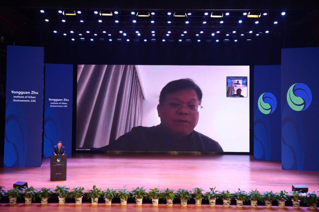浙江省废弃生物质循环利用与生态处理技术重点实验室学术委员会主任、中国工程院院士蒋剑春作了题为“The development of low-carbon technologies for agricultural and forestry waste biomass utilization”的主旨报告,围绕新能源、新材料、碳中和等国家重大战略需求,介绍了团队的最新研究成果,指出了如今废弃物循环利用的成就以及不足之处,并从国情出发为我国未来的废弃物处理与减污降碳工作提出了建议;中国科学院院士朱永官则带来了题为“Soilhealth and planetary health”的主旨报告,从“星球健康”这一概念出发,讲解“土壤—植物—人体”的相互关系,并从必要性和重要性两方面分析了土壤健康研究的意义;联合国环境规划署(UNEP)首席专家Ruy Anaya de la Rose博士与香港教育大学黄铭洪教授分别做了题为“Learning from the biochar for sustainable soils (B4SS) - past and future action”和“Biochar as feed supplements for animal farming, with a focus on fish farming”的主旨报告,探讨了生物质炭与土壤可持续性的相互关系,分享了废弃物循环利用相关的科学理念、先进经验、创新方案。