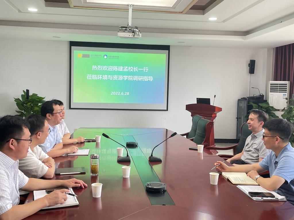 陈校长首先肯定了学院在各方面工作上取得的成绩,并对人才引进和培养、学科发展等工作给予了详细指导。他指出环资学院要进一步提升学科水平,加强博士点培育建设,更加凸显应用研究型特色;人才是第一资源,进一步加大高层次人才引进力度,积极开展多渠道人才引进工作,坚持引育并举,最大限度为人才服务,营造浓厚的学术氛围,打造高水平教师队伍;要增强科技服务能力,推进好地方研究院等协同创新工作。陈校长一行还参观并走访了环资学院办公室和实验室。
