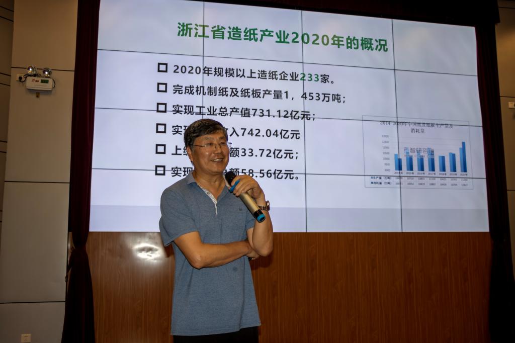 产教融合创新发展论坛上,胡开堂理事长做主题为“纸基材料行业现状与分析”报告,介绍了全国以及浙江纸基材料企业发展现状。忻皓秘书长阐述了我国碳减排和以纸代塑的背景与政策。胡志军副院长介绍了产业学院背景、建设进展与建设规划。张学金副院长汇报了纸基材料团队的最新创新成果。