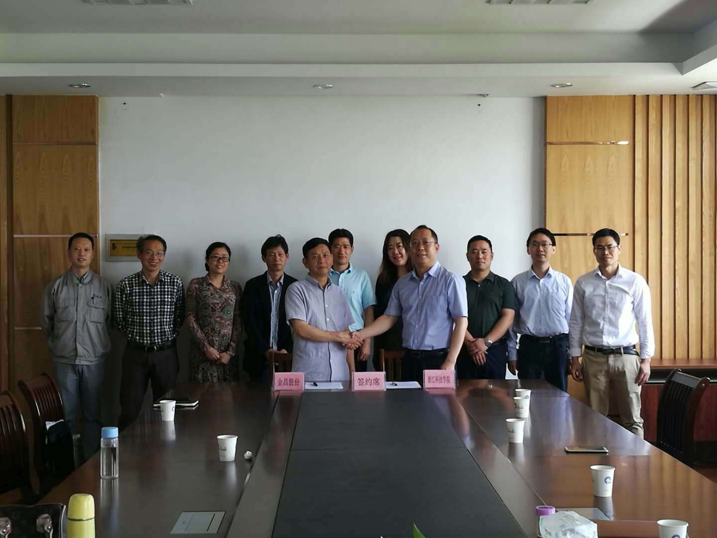 2018年5月4日,我院沙力争院长、科研处杨瑞芹处长、科研处吴刚老师、环资学院张学金老师、陈华老师一行应邀赴龙游县浙江金昌特种纸股份有限公司开展产学研合作。受到浙江金昌特种纸股份有限公司董事长张求荣先生、总工程师童树华教高、龙游县科技局王晟局长、周樟贤科长等当地科技部门和企业领导的热情接待。