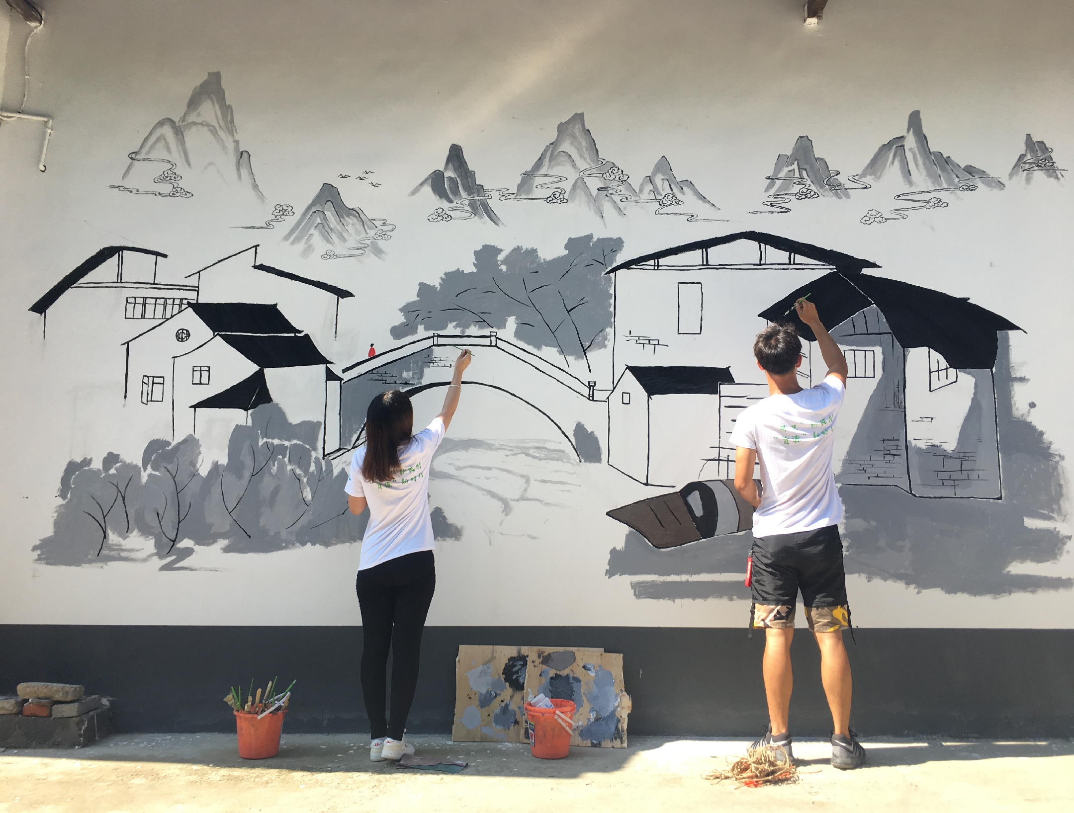 前日,实践团员们从乡镇府工作人员口中了解到,如今的太真乡正在积极规划和建设新农村,在乡村建设上,希望能更加具有特色,更加具有人文气息。得知这一诉求之后,实践团员们马上组织开展行动,在紧凑有序的前期准备和原材料选取之后。经过人员分配、协调,一部分人开始着手墙体绘画,一部分人利用当地盛产的毛竹,制作特色花篮,将太真乡的生活和人文气息装点的更加浓郁。