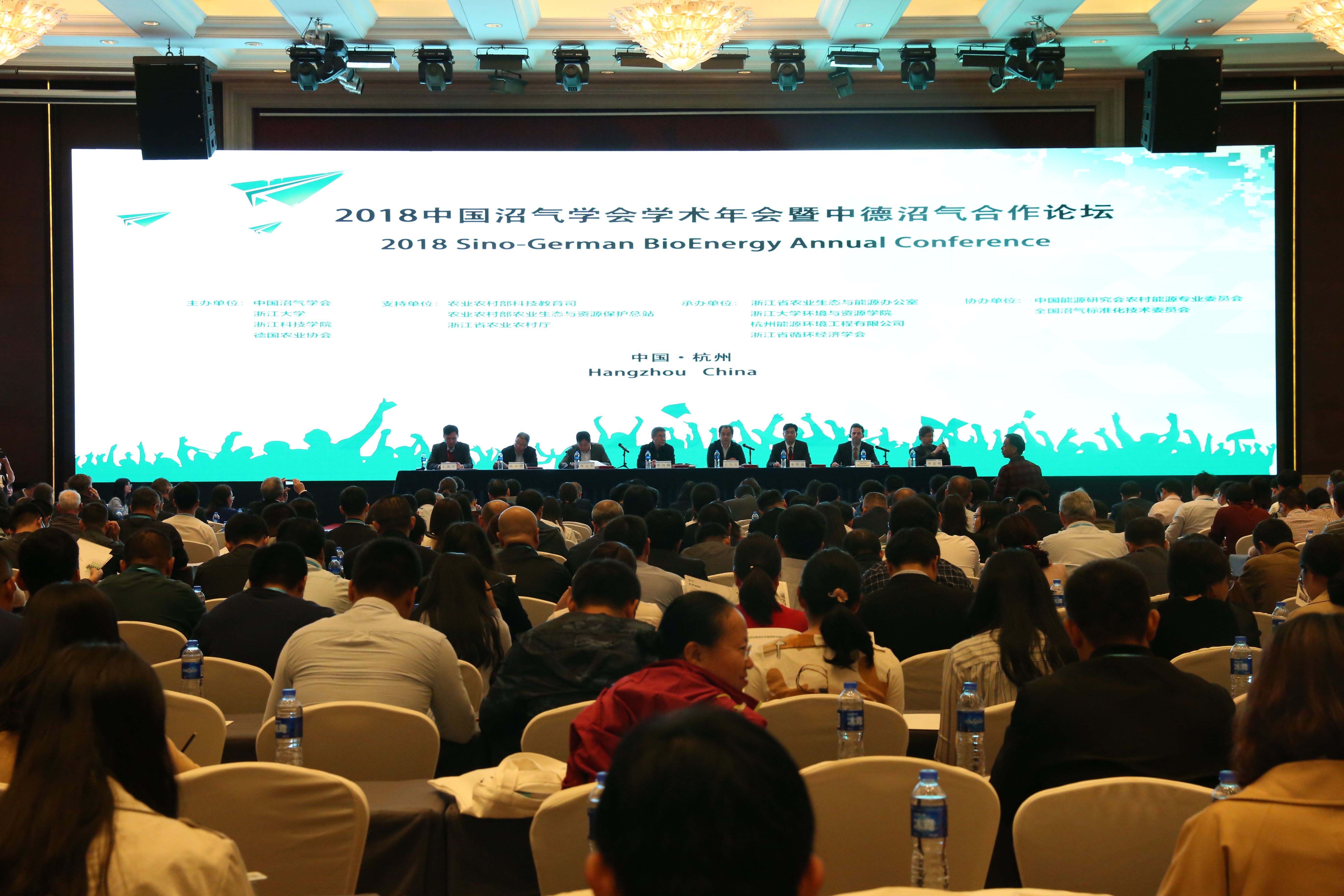 10月30-31日,2018年中国沼气学会学术年会暨第十届中德沼气合作论坛在杭州顺利召开。大会以“乡村振兴、循环利用、绿色发展”为主题,由我校和中国沼气学会、浙江大学和德国农业协会(DLG)联合主办,浙江省循环经济学会和浙江省农业生态与能源办公室、浙江大学suncitygroup太阳集团、杭州能源环境工程有限公司共同承办,中国能源研究会农村能源专业委员会、全国沼气标准化技术委员会协办。农业农村部科技教育司原司长、中国沼气学会理事长张凤桐、农业农村部农业生态与资源保护总站站长王久臣、浙江省农业农村厅总农艺师蔡元杰、浙江科技学院副校长单胜道、农业农村部科教司能源生态处处长陈彦宾、德国农业部能源司处长Stefan Meierhofer、农业农村部农业生态与资源保护总站首席专家李景明出席开幕式并致辞,中国沼气学会秘书长王凯军主持开幕式。来自中德沼气工程相关领域的专家、学者、企业代表等400余人出席此次盛会。