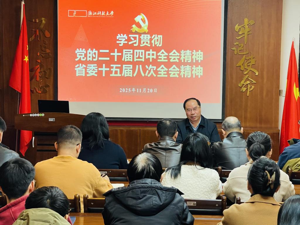 随后,赵东福面向环资学院班子成员、内设机构负责人、高层次人才及师生代表作了党的二十届四中全会、省委十五届八次全会精神专题宣讲报告。