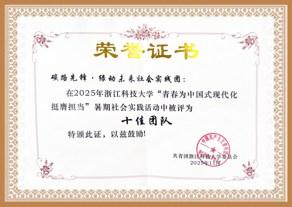 “碳路先锋”实践团同时荣获中国环境科学学会授予的“优秀社团”称号,团队负责人章俊杰荣获“优秀志愿者”称号,展现了团队在推动绿色低碳大中小一体化工作中的专业素养与社会影响力。