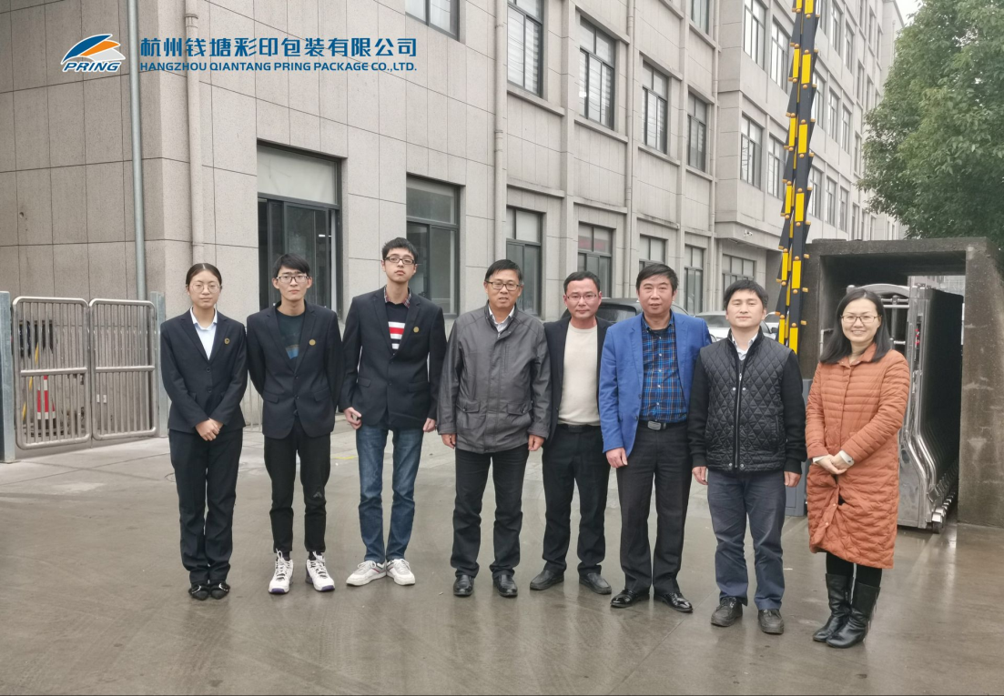 2018年12月6日,由环资学院胡志军副院长带队,包装工程系主任陈文革老师、徐晓娟老师一行三人前往浙江钱塘彩印有限公司,走访企业并探望了正在企业进行工程技术实习的大四学生。浙江钱塘彩印有限公司座落在国家级萧山经济技术开发区内,是一家杭州地区较大规模的精品印刷企业,集设计制作、印刷、装订于一体的综合性型独资企业。