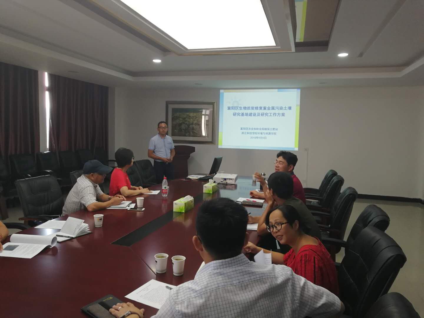 9月5日下午,我院召集召开富阳区生物质炭修复重金属污染土壤研究基地建设方案讨论会,院长单胜道教授、浙江省耕地质量与肥料管理局陈一定研究员和杭州市富阳区农业和林业局植保土肥站蒋玉根、徐君站长及我院相关研究人员参加了讨论会,会议由我院院长单胜道教授主持。我院孟俊副教授介绍了富阳区生物质炭修复重金属污染土壤研究基地建设方案和试验方案,与会人员提出了宝贵的意见建议。会议商定,由浙江科技学院和富阳区农业和林业局共建富阳区生物质炭修复重金属污染土壤研究基地。