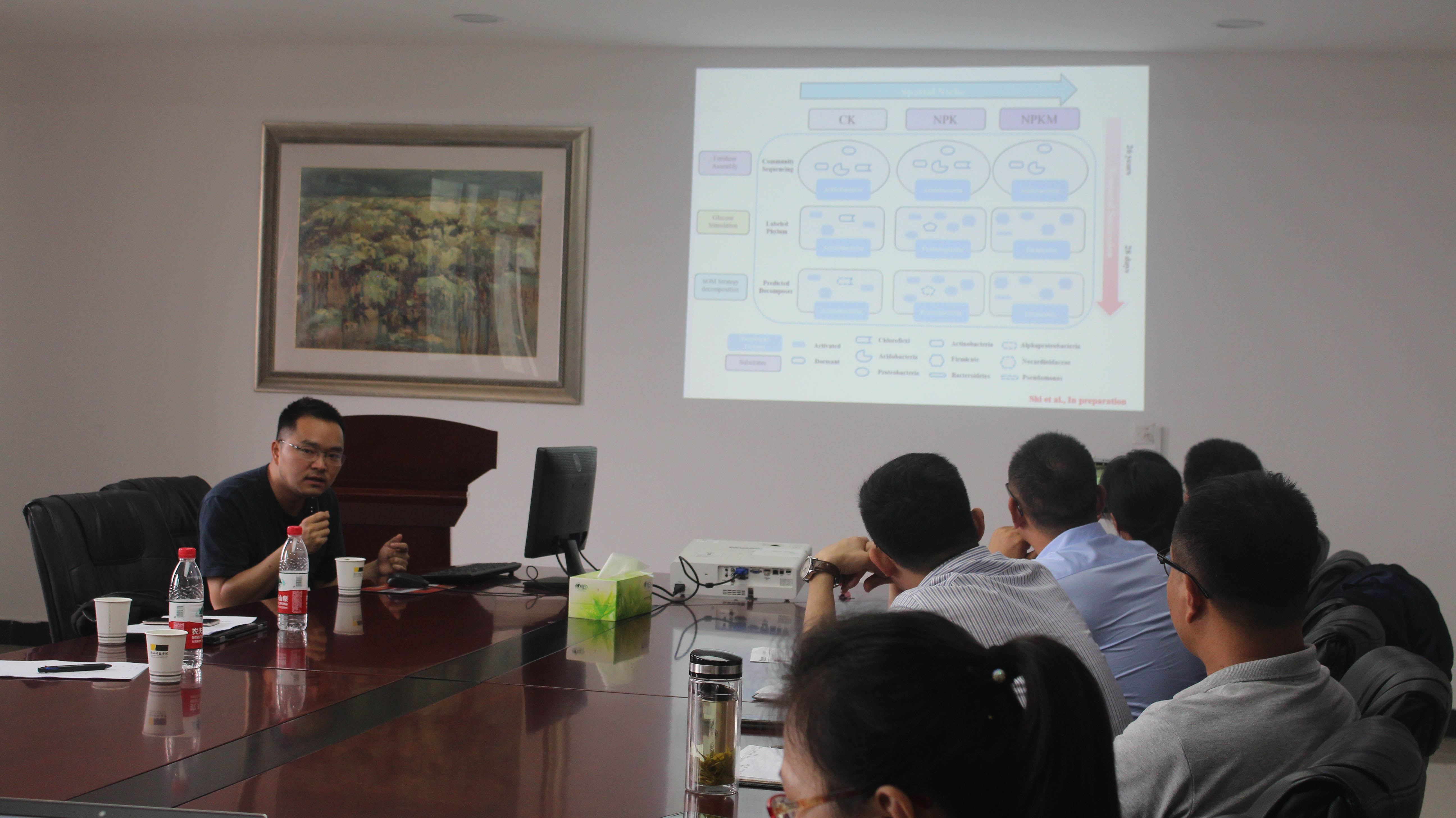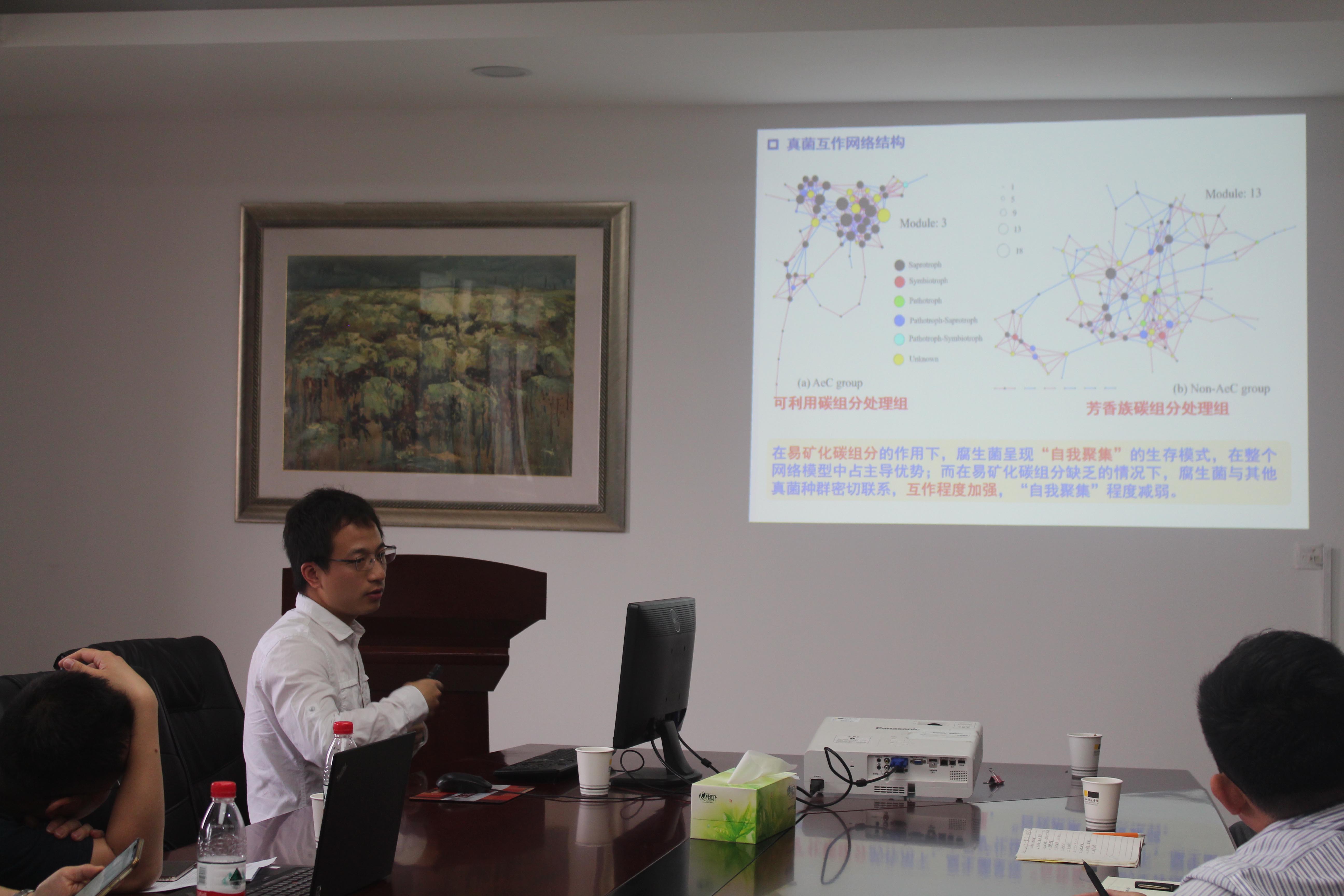 报告会上,王忠强教授围绕什么是泥炭、我国及全球泥炭资源,东北泥炭存储资源、泥炭的应用价值及泥炭地开采种植水稻过程中氮的输入对泥炭地碳氮周转的影响等内容,作了题为“氮输入对泥炭地碳氮转化影响研究”的学术报告;罗煜副教授围绕多碳源体系下梯度活性底物在土壤中降解、底物对土壤有机质形成的贡献以及土壤有机碳矿化形成的微生物机制等研究内容,作了题为“土壤有机碳周转过程及驱动机制”的学术报告;李勇副教授从农业土壤氧化亚氮的微生物调控机理、土壤氮循环微生物对气候变暖的适应性和反馈作用两方面介绍了其近年的研究进展,作了题为“农业土壤N2O排放与气候变暖相互作用研究”的学术报告;戴中民博士从生物质炭的制备、生物质炭对土壤肥力改良及其对土壤细菌、真菌等微生物定殖影响等方面,作了题为“生物质炭与土壤微生物生态”的学术报告。
