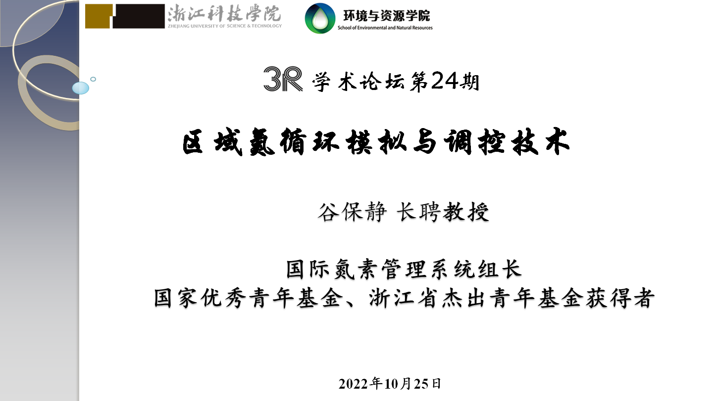 2022年10月25日下午,应浙江科技学院suncitygroup太阳集团孟俊副研究员邀请,国家优秀青年基金和浙江省杰出青年基金获得者浙江大学谷保静教授到访suncitygroup太阳集团并做题为“区域氮循环模拟与调控”的学术报告,报告由副院长张进教授主持,环境工程专业教师和硕士研究生等参加了本次报告会。