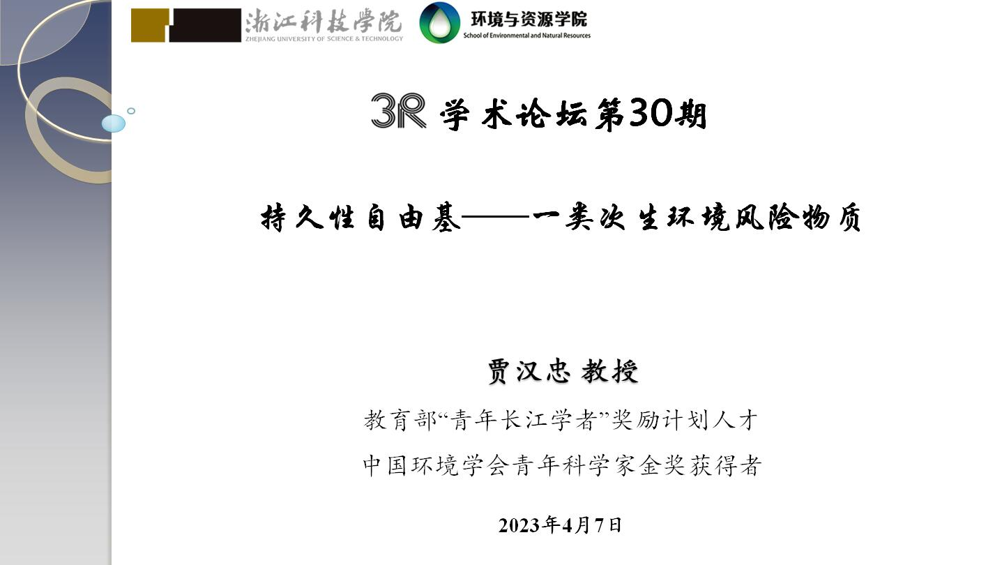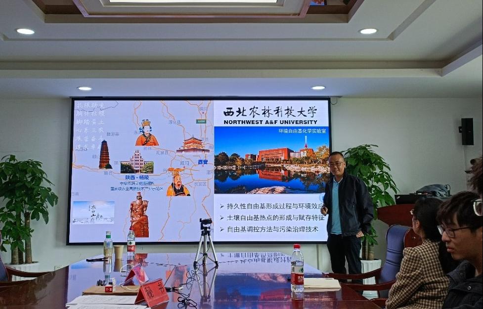4月7日下午,西北农林科技大学资源环境学院副院长贾汉忠教授到访suncitygroup太阳集团并作题为“持久性自由基的环境行为与效应”的学术报告,报告由环境工程系主任方婧教授主持,环境工程系专业教师以及研究生等20余人参加报告会。