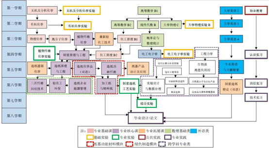 “十三五”特色专业轻化工程培养目标实施课程地图